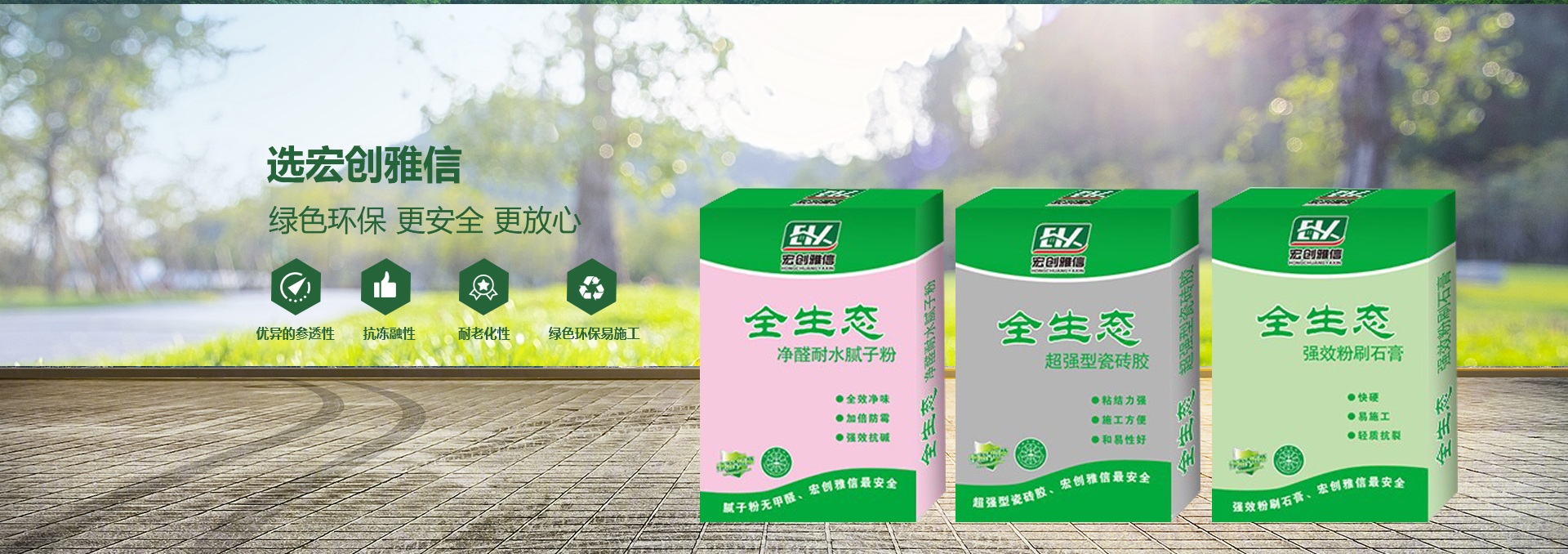 宏創(chuàng)雅信裝飾材料北京有限公司(威海分公司)是一家生產(chǎn),研發(fā),運(yùn)輸,施工綜合性股份制企業(yè),主要產(chǎn)品:快粘粉、嵌縫石膏、內(nèi)外墻耐水膩?zhàn)臃?、?nèi)墻超細(xì)膩?zhàn)臃邸⒏邚?qiáng)石膏、粉刷石膏、瓷磚粘接劑、填縫劑、內(nèi)外墻防水涂料、108膠、聚合物粘接砂漿、聚合物抗裂抹面砂漿、灰鈣、重質(zhì)碳酸鈣、砌筑砂漿、膠粉聚苯顆粒、浮雕骨料、?;⒅楸厣皾{、FTC相變節(jié)能保溫砂漿、SF增水保溫砂漿、等產(chǎn)品。